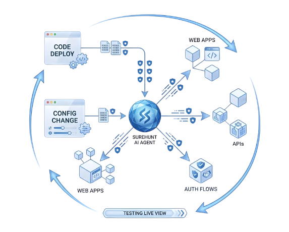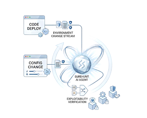 Stay protected as your system evolves. SureHunt adapts to deployments, configuration changes, and new exposures, ensuring your attack surface is always up to date.