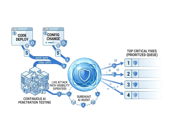 Traditional pentests tell you what might be wrong. SureHunt shows what can actually be exploited right now. Continuously simulate real attacker behavior, validate exploit paths, and get clear, prioritized fixes — not reports.